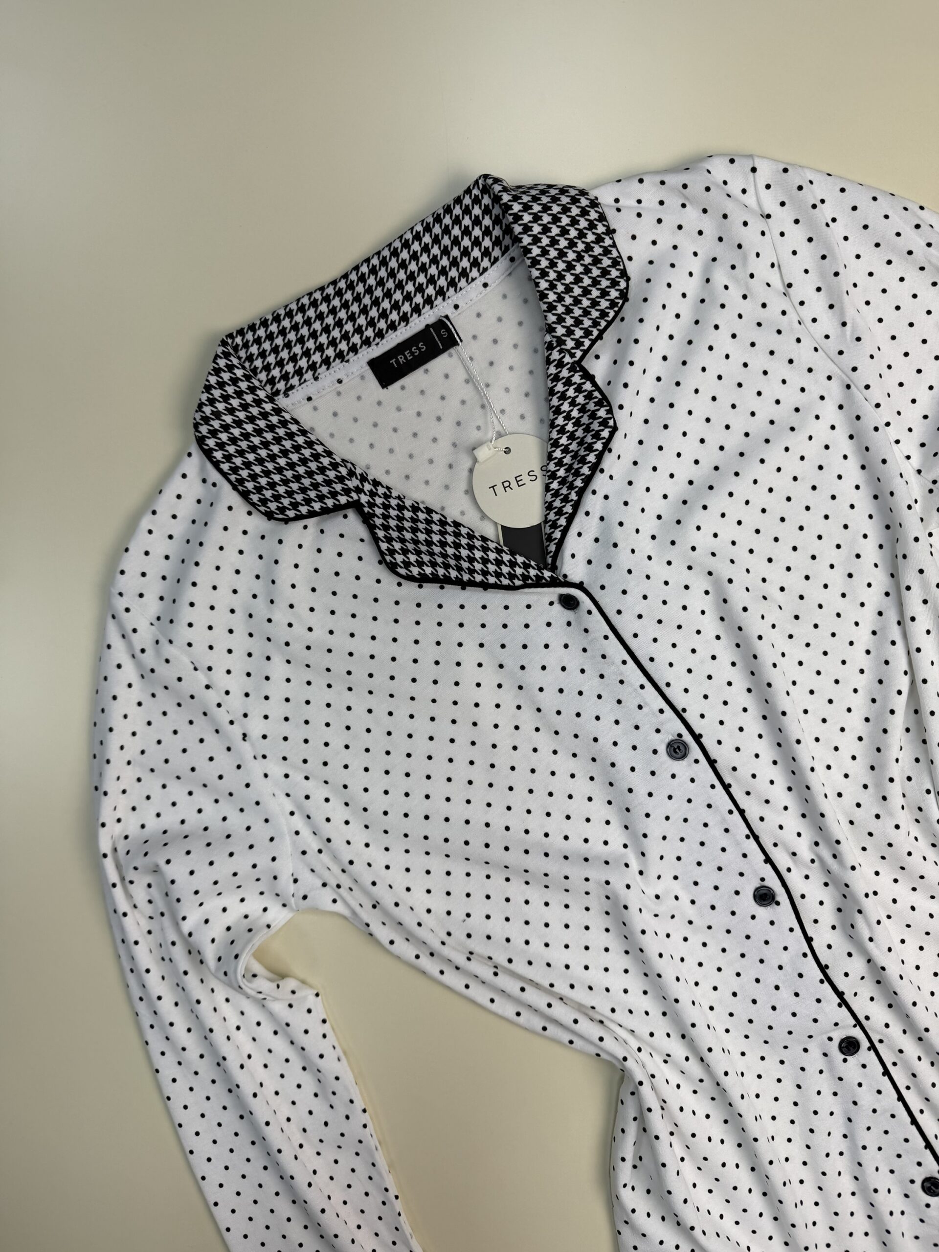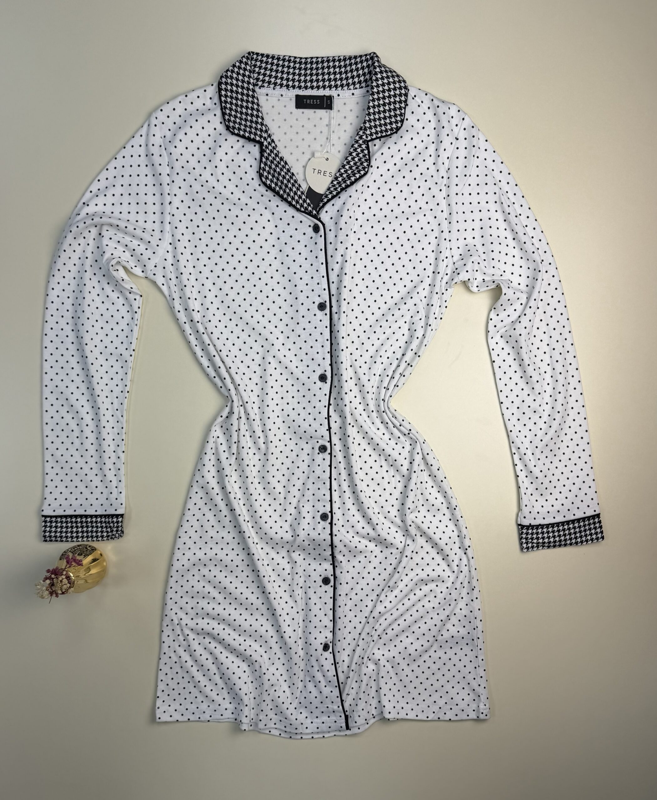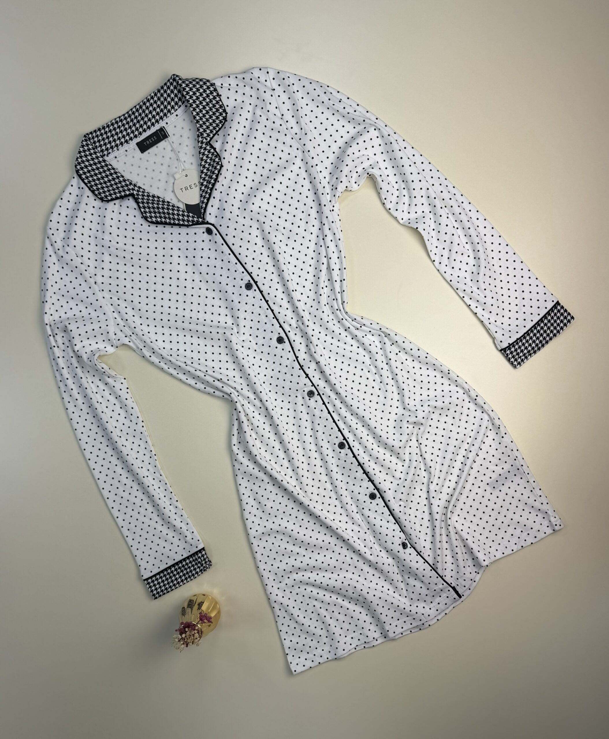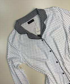 Chemise de nuit boutonnée – Tress – « Noir » petit pois