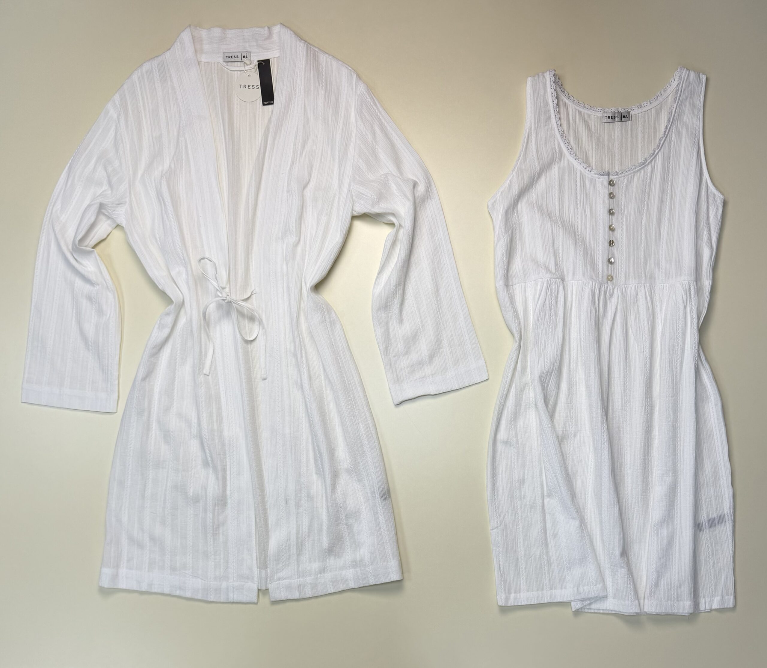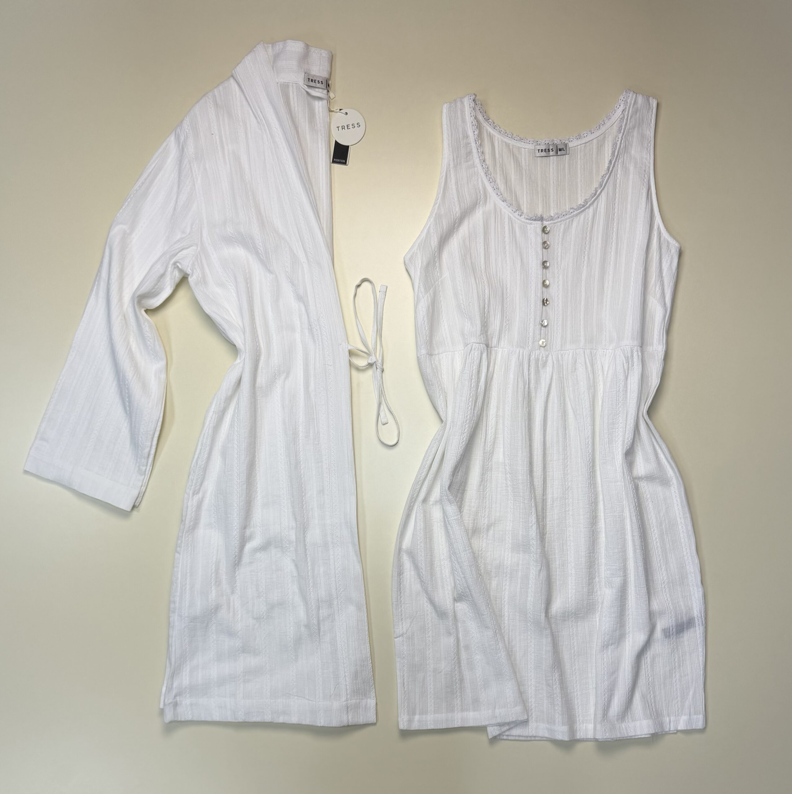 Ensemble nuisette peignoir 100% coton » Blanc » – TRESS –