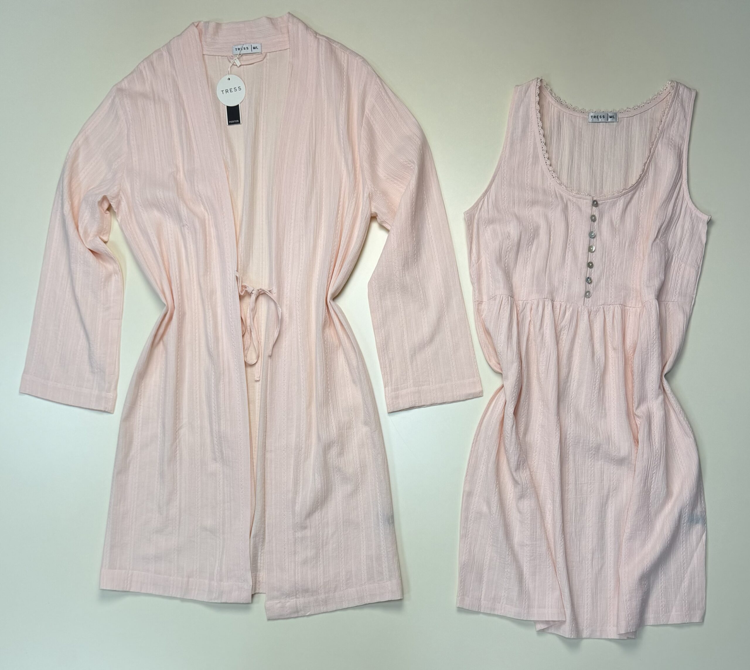 Ensemble nuisette peignoir 100% coton » Rose » – TRESS –