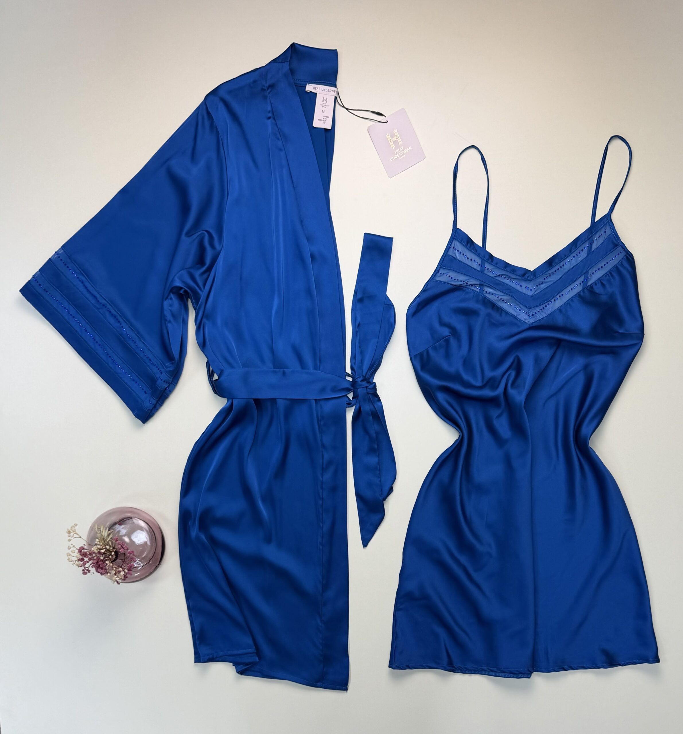 Ensemble nuisette peignoir en satin » Bleu «