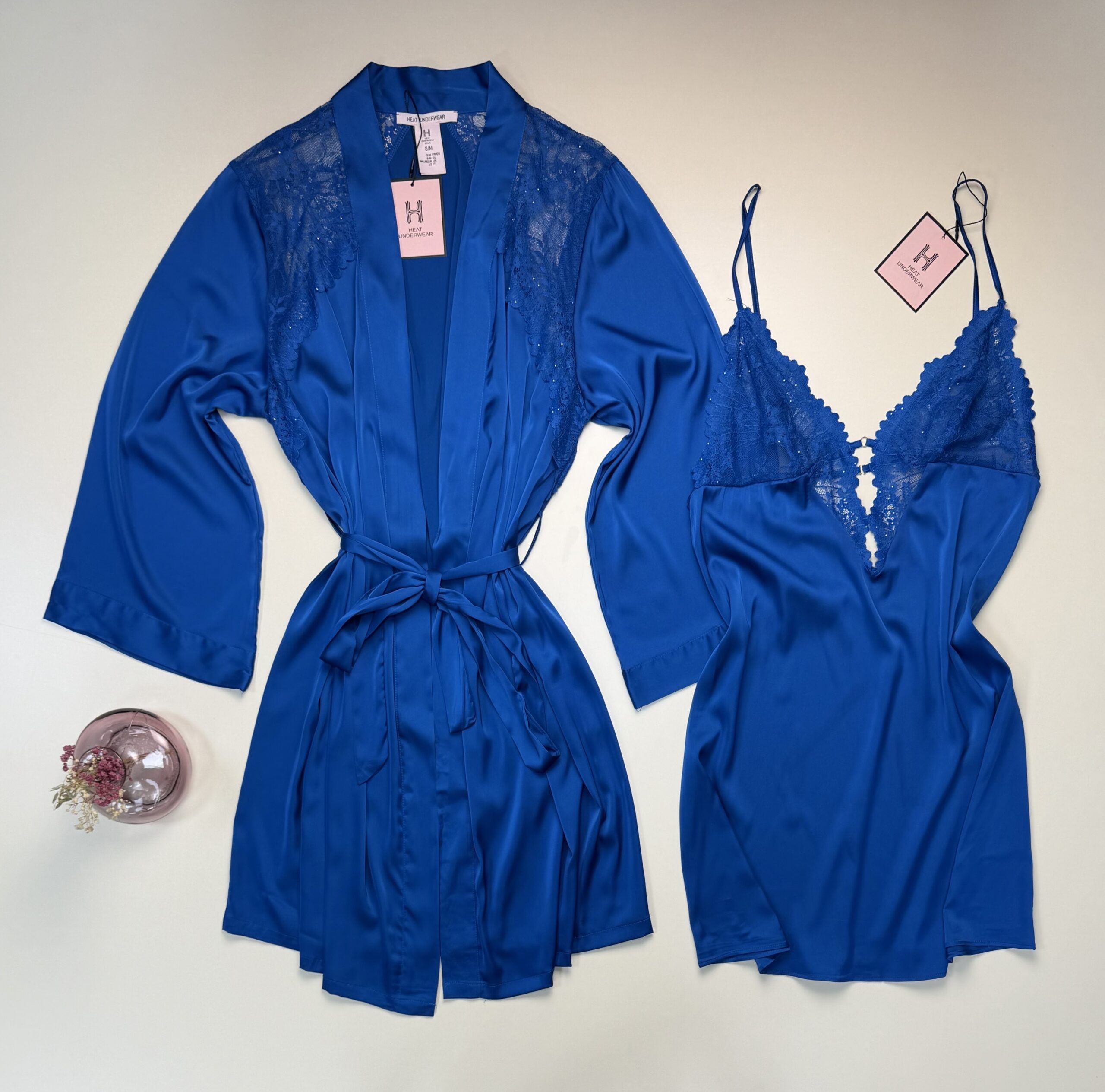 Ensemble nuisette peignoir en satin » Bleu «