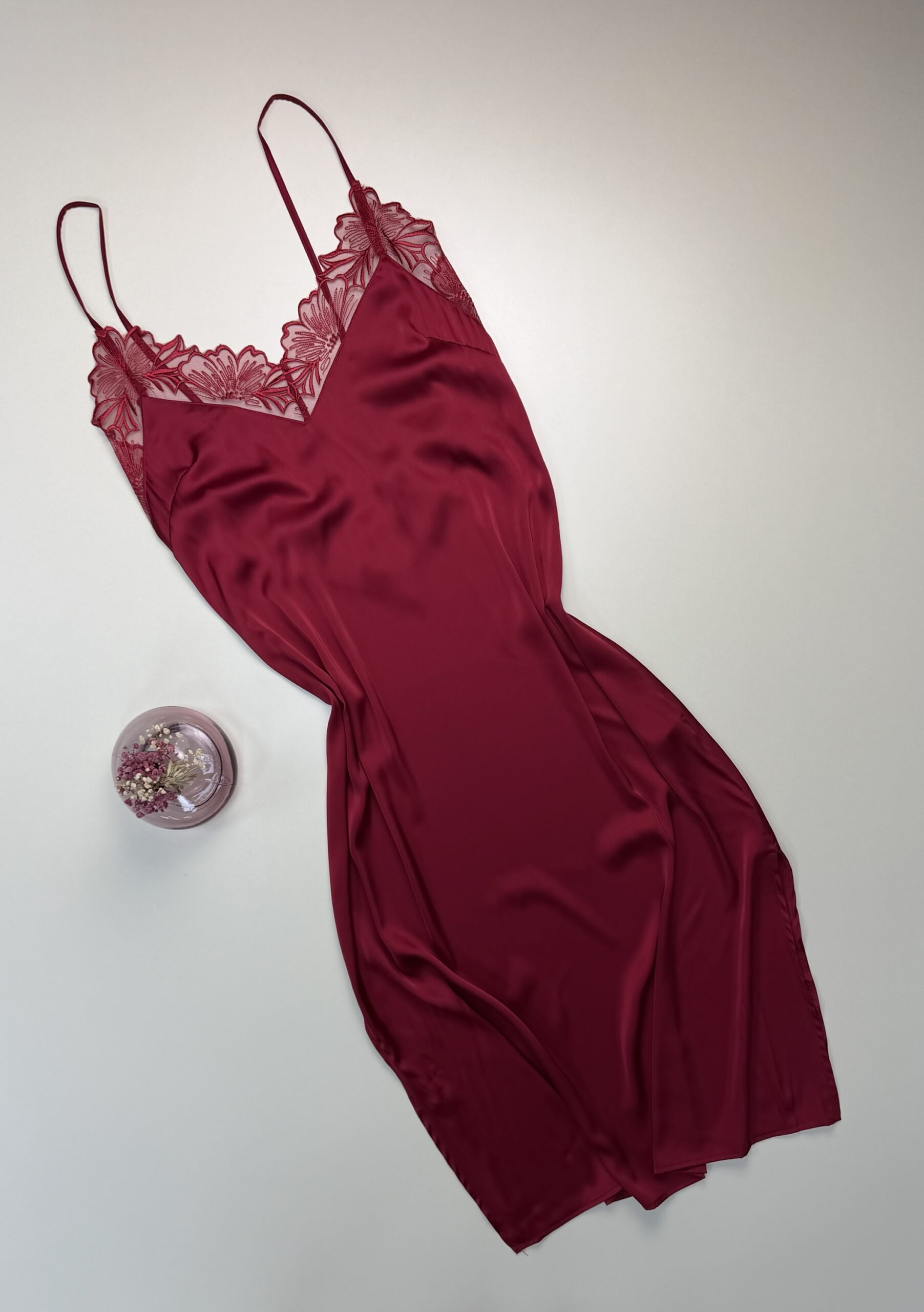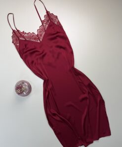 Ensemble nuisette peignoir long en satin » Bordeaux «