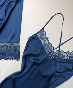 Ensemble nuisette peignoir en satin » bleu / vert «