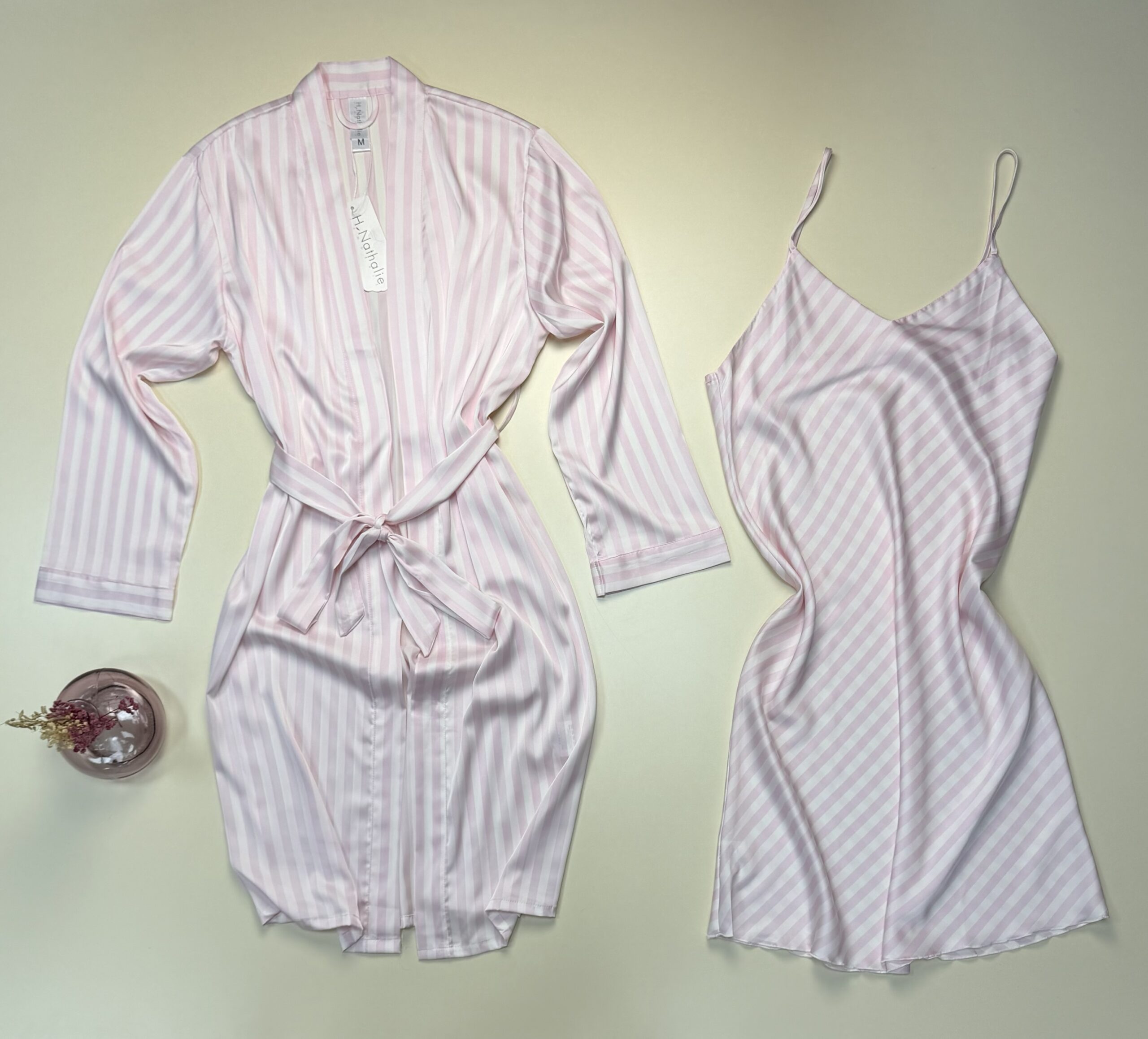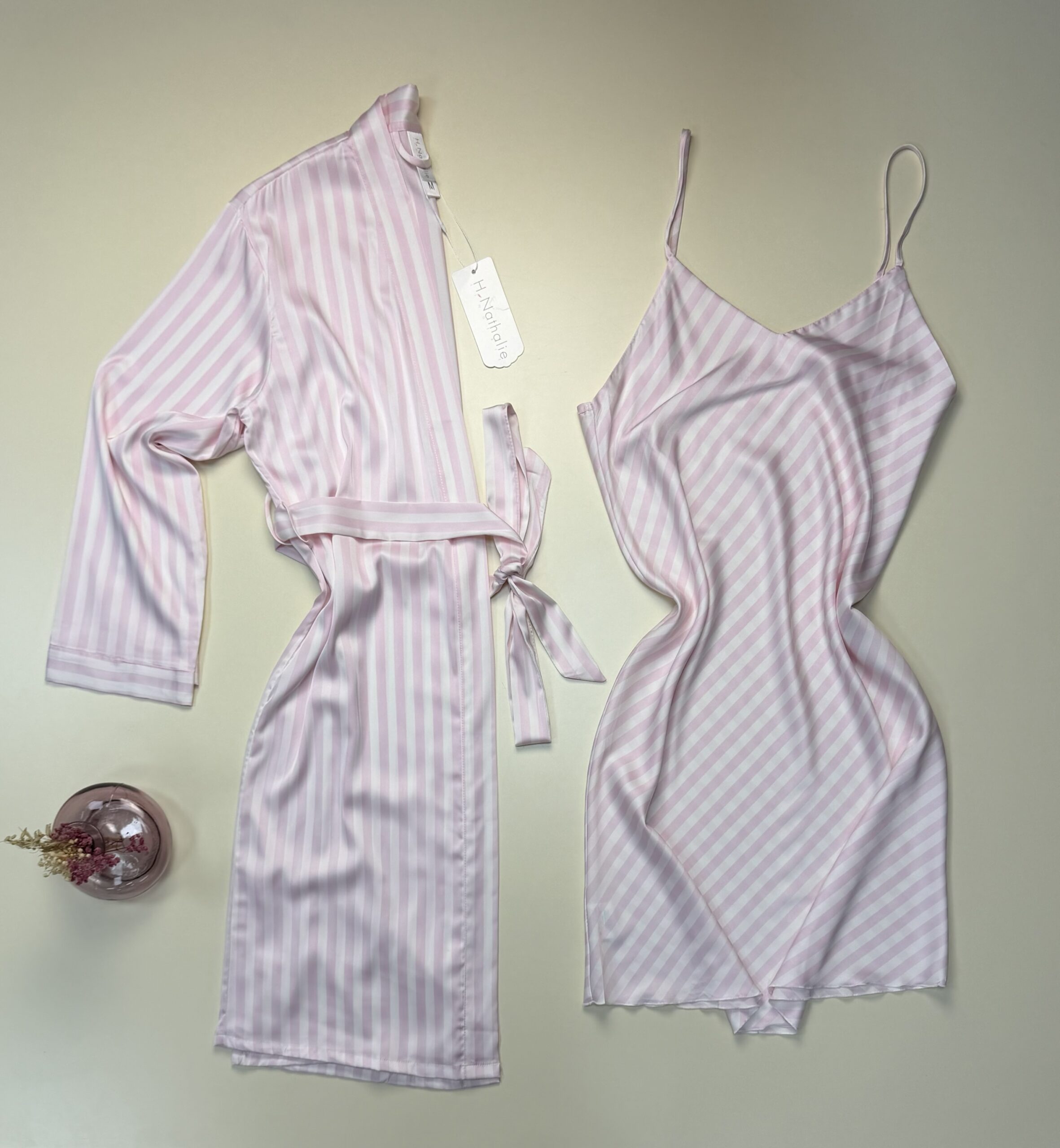 Ensemble nuisette peignoir » rose clair à rayures «