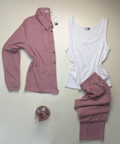 Pyjama 3 pcs boutonné « Rose »