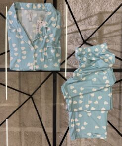 Pyjama Boutonée « Bleu Coeur » manche longue «