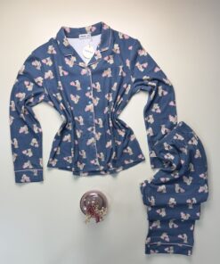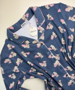 Pyjama boutonné « Bleu à motifs nounours »