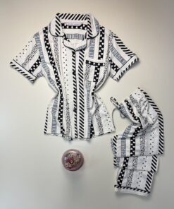 UGS : VICTORIES BLANC CASSE A MOTIFS Catégories : Pyjama, Pyjama boutonné, Pyjama haut demi manche