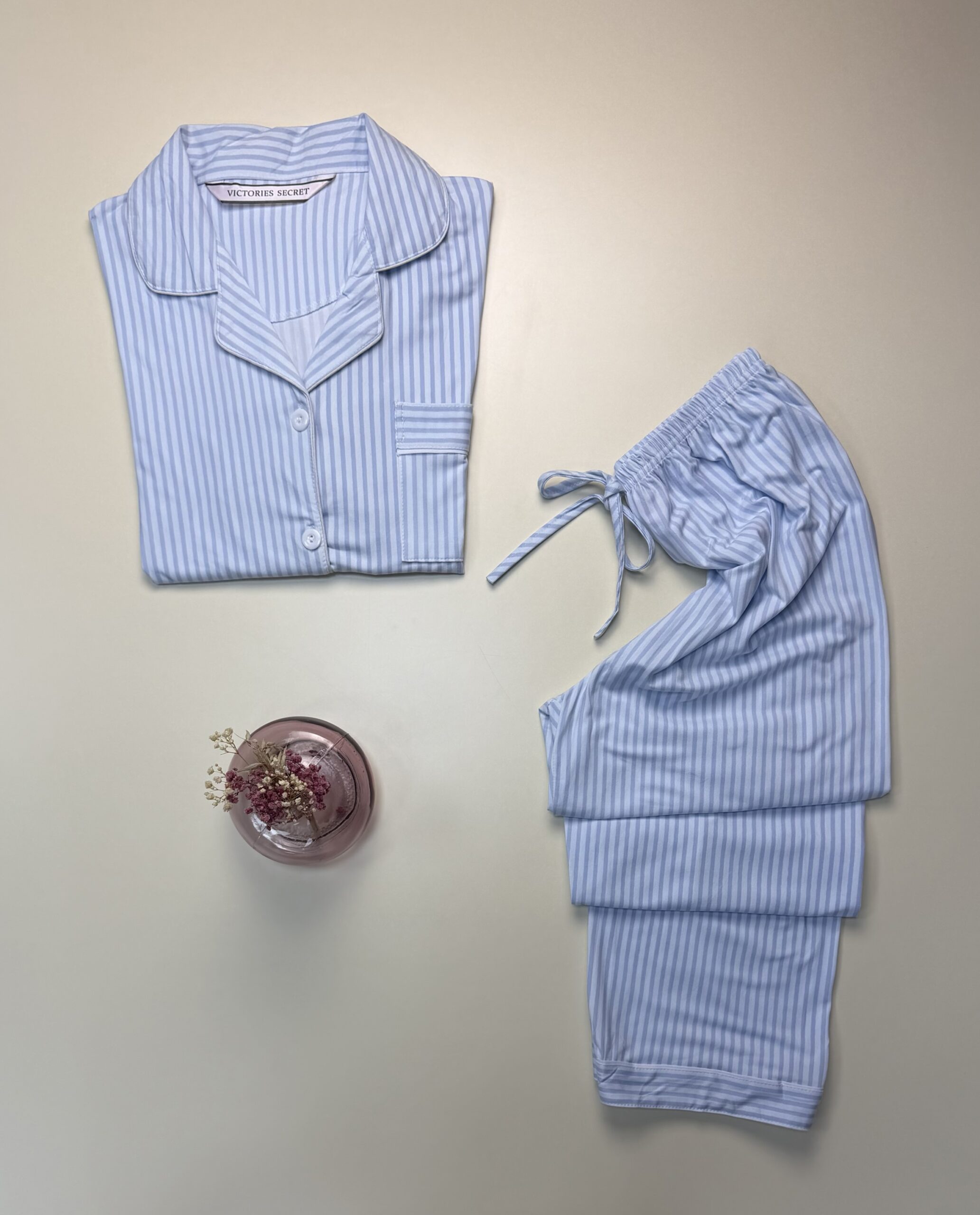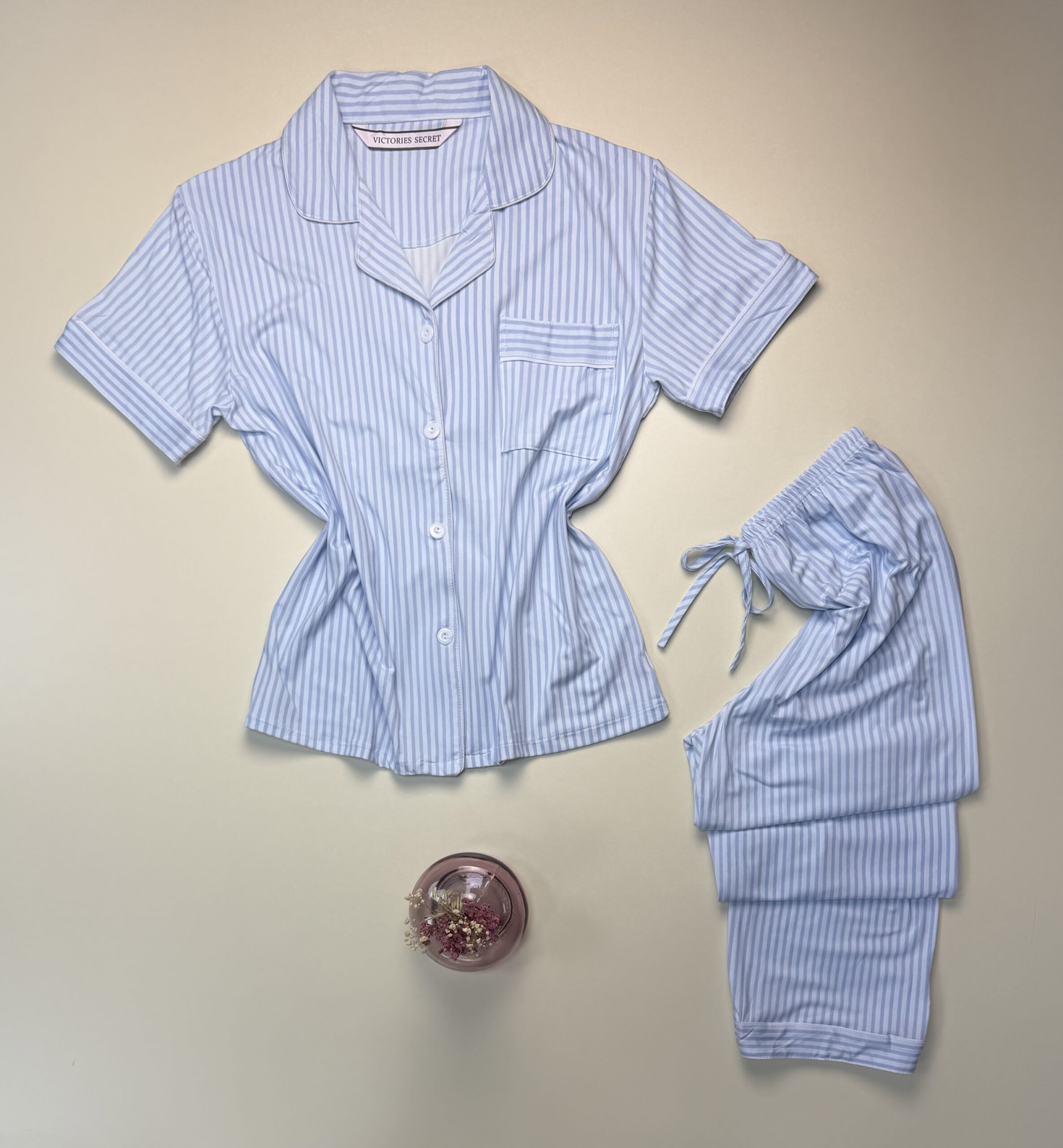 Pyjama boutonné haut demi manche » Bleu à rayures «