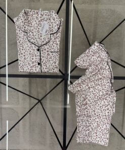 Pyjama boutonné haut demi manche » Motif léopard » – ROSE FONCE –