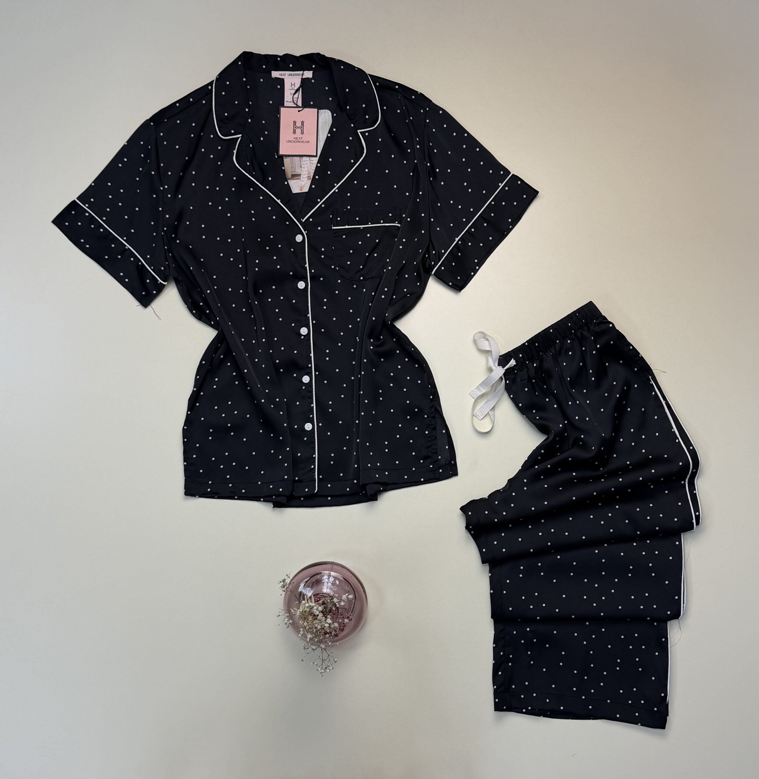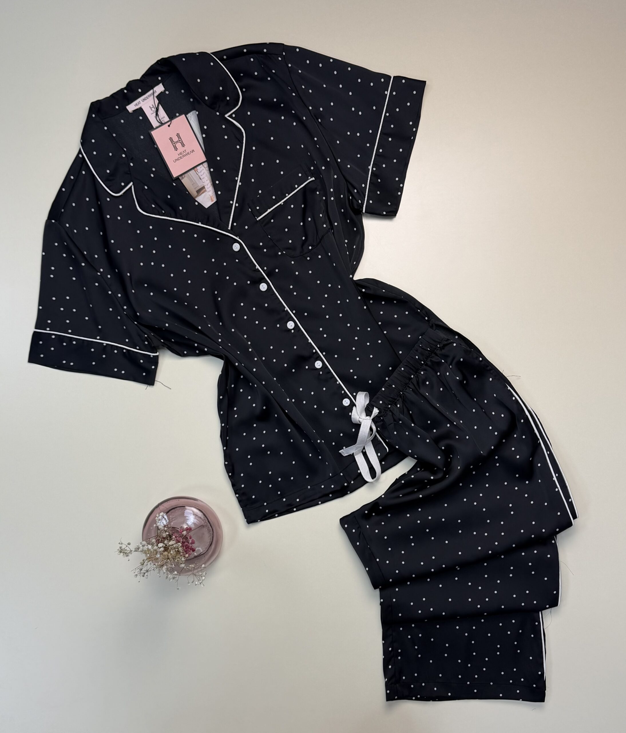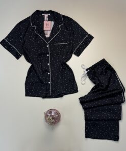 UGS : HP392 NOIR PETIT POIS Catégories : Pyjama, Pyjama boutonné, Pyjama boutonné en satin, Pyjama haut demi manche