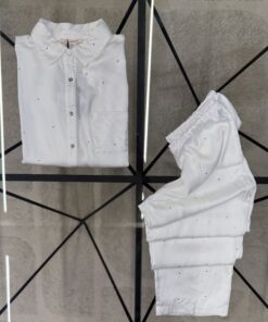 Pyjama Boutonnée en satin perlé » Blanc «