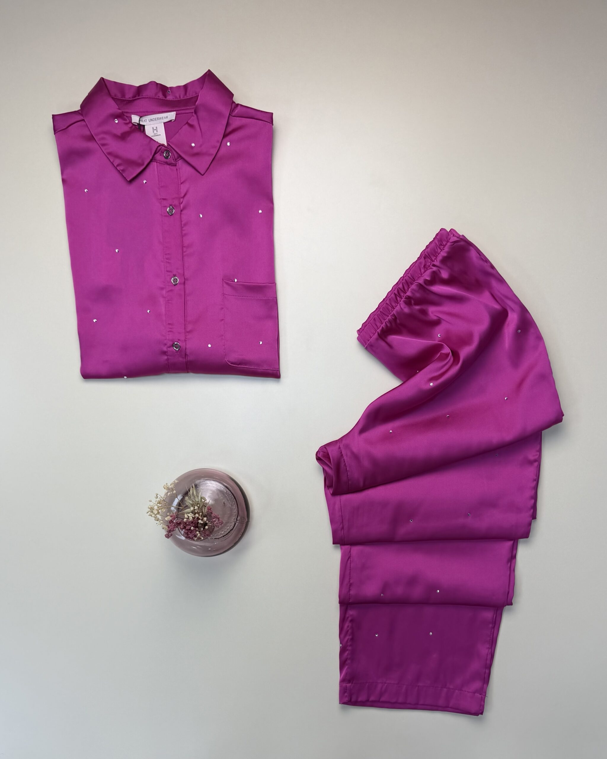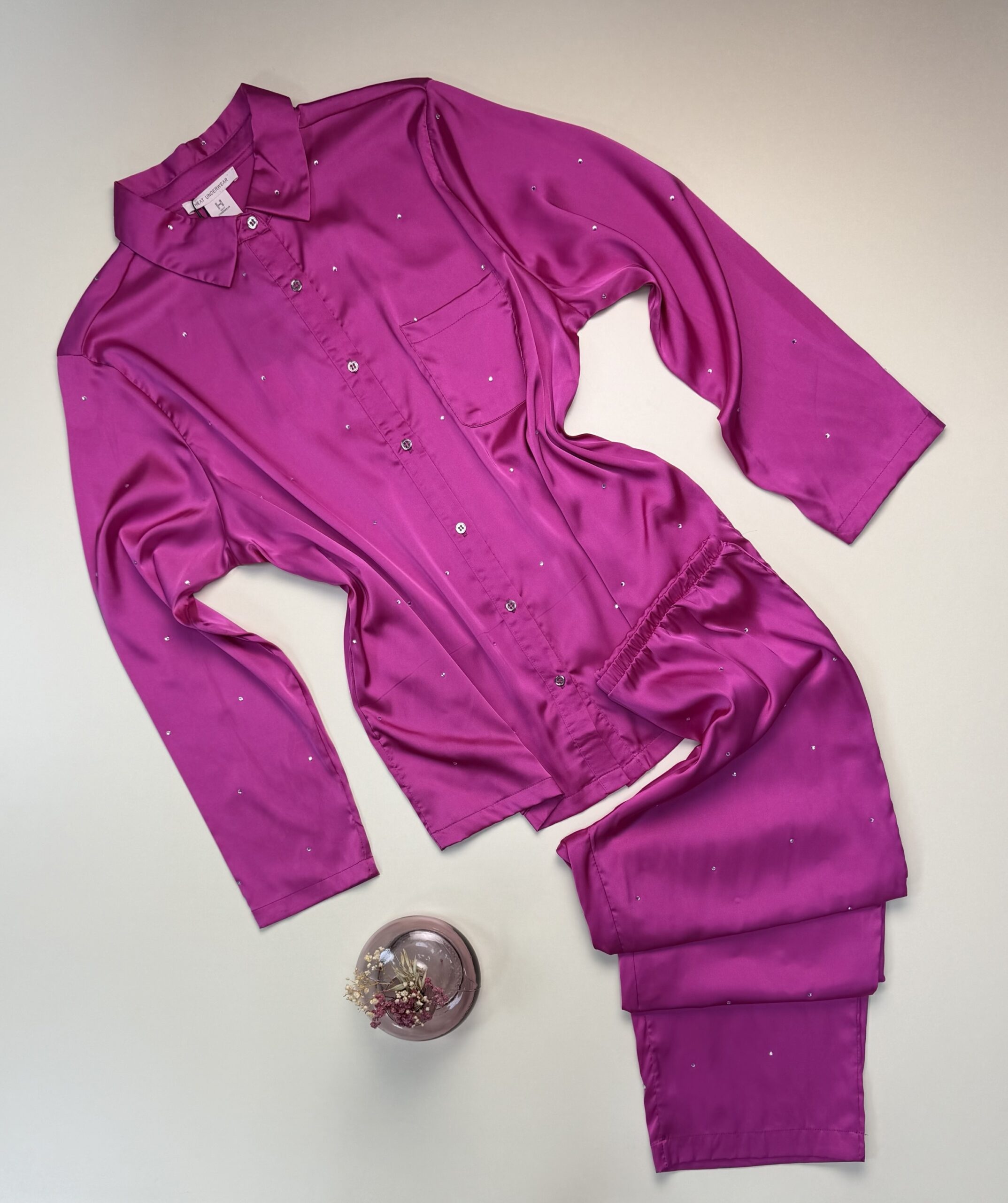 Pyjama Boutonnée en satin perlé » Fushia «