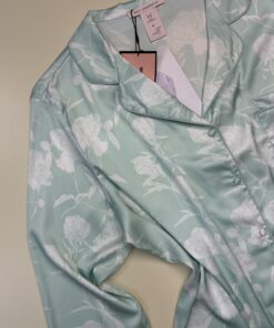 Pyjama Boutonnée en satin » Vert à fleurs «