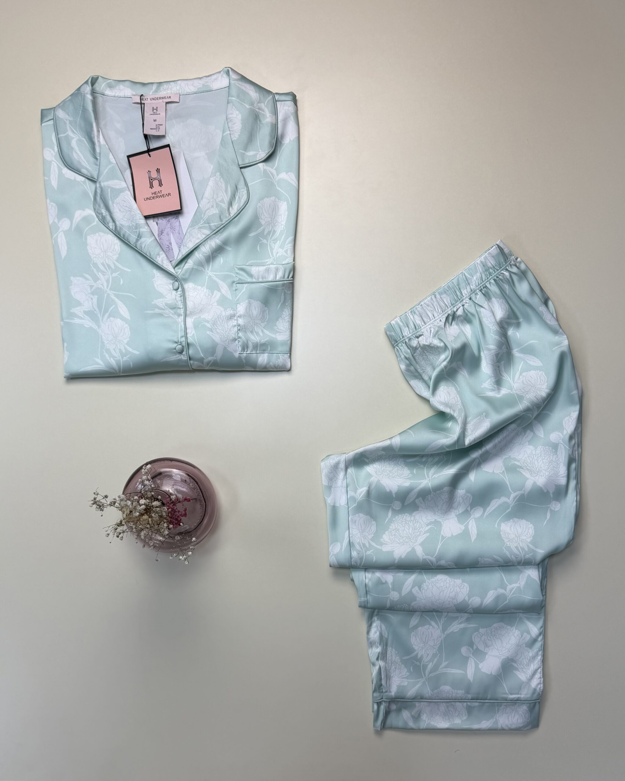 UGS : HP321 VERT A FELURS Catégories : Pyjama, Pyjama boutonné, Pyjama boutonné en satin