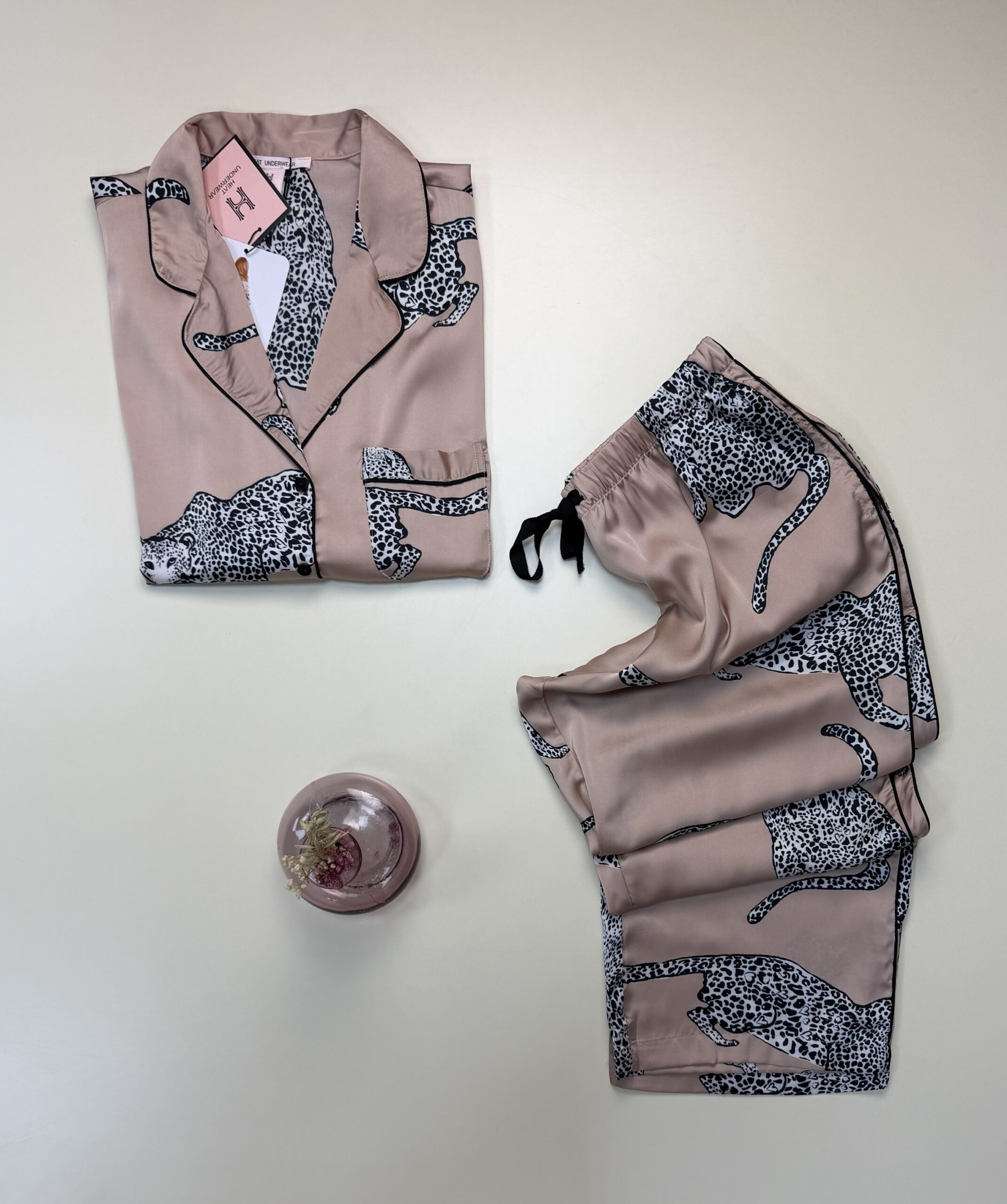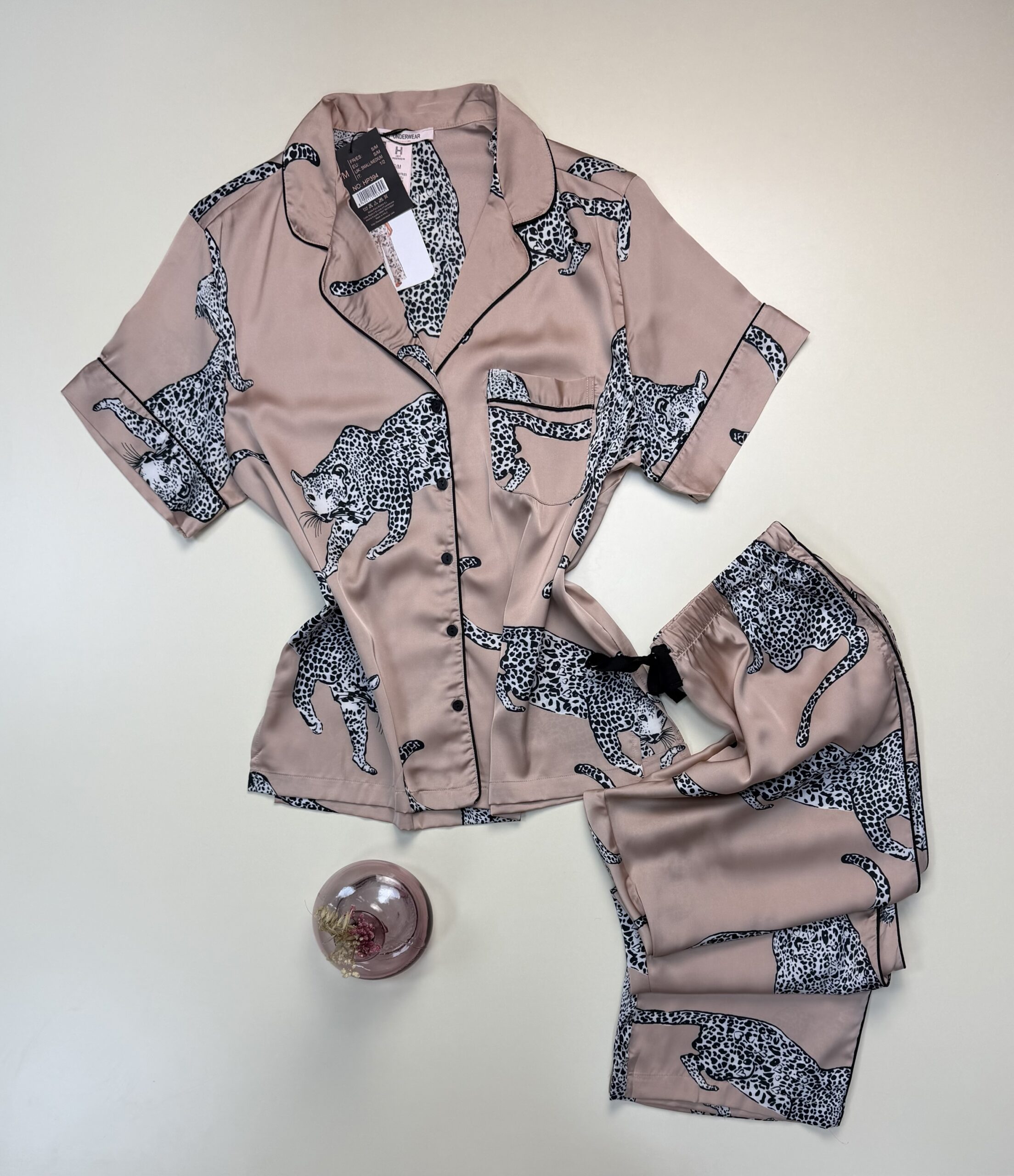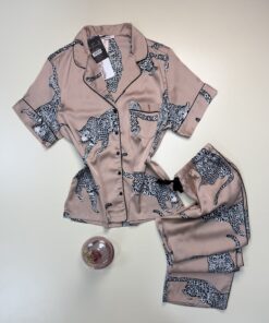 UGS : HP394 LEOPARD satin dessin Catégories : Pyjama, Pyjama boutonné en satin, Pyjama haut demi manche
