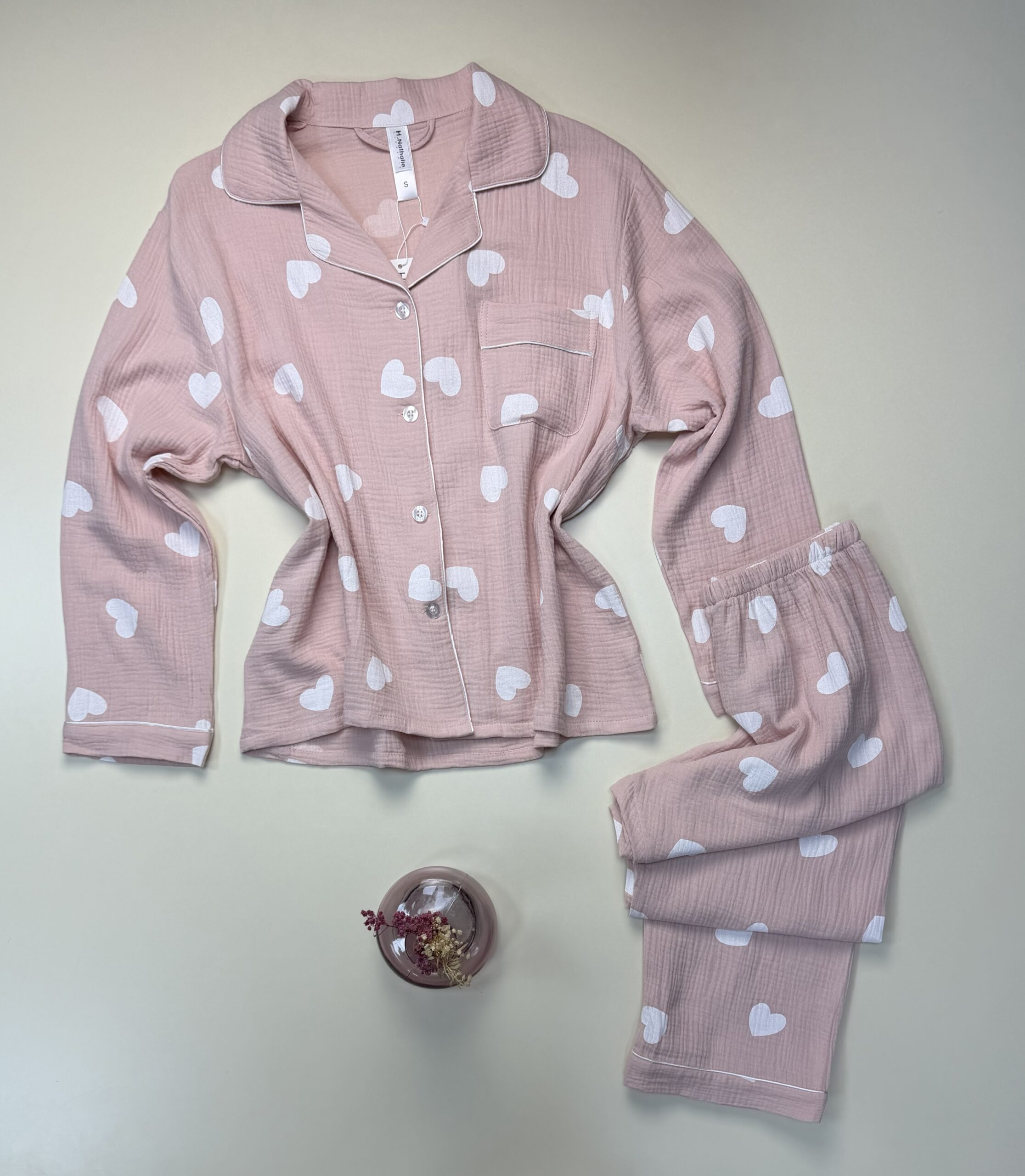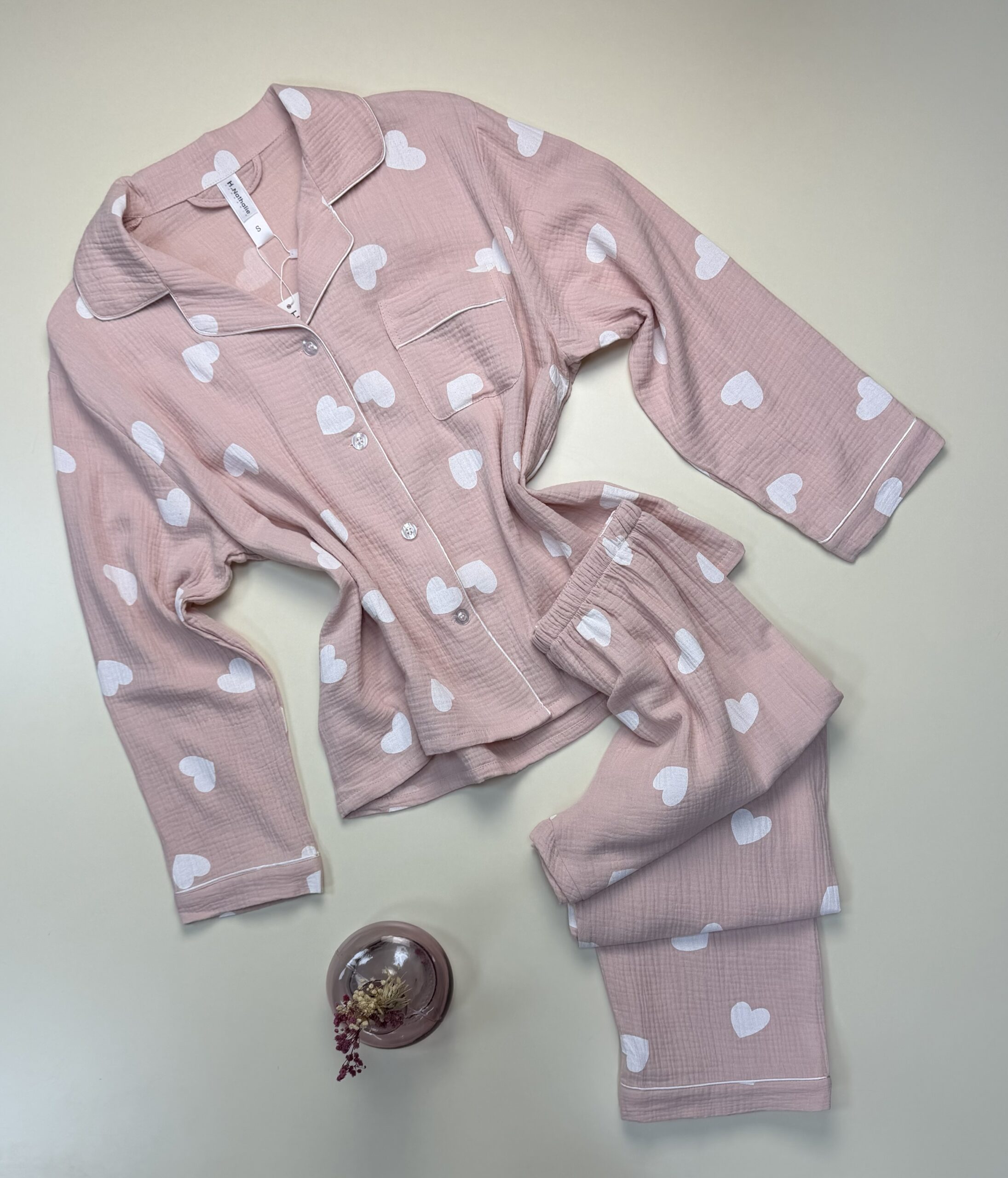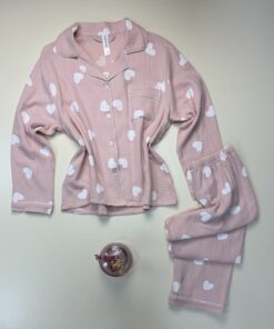 Pyjama manche longue boutonnée « coeur blanc «