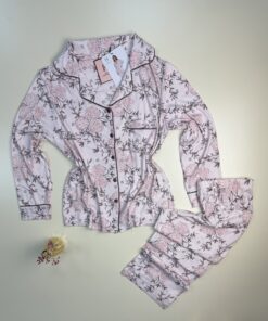 Pyjama manche longue boutonnée « Rose à fleurs »