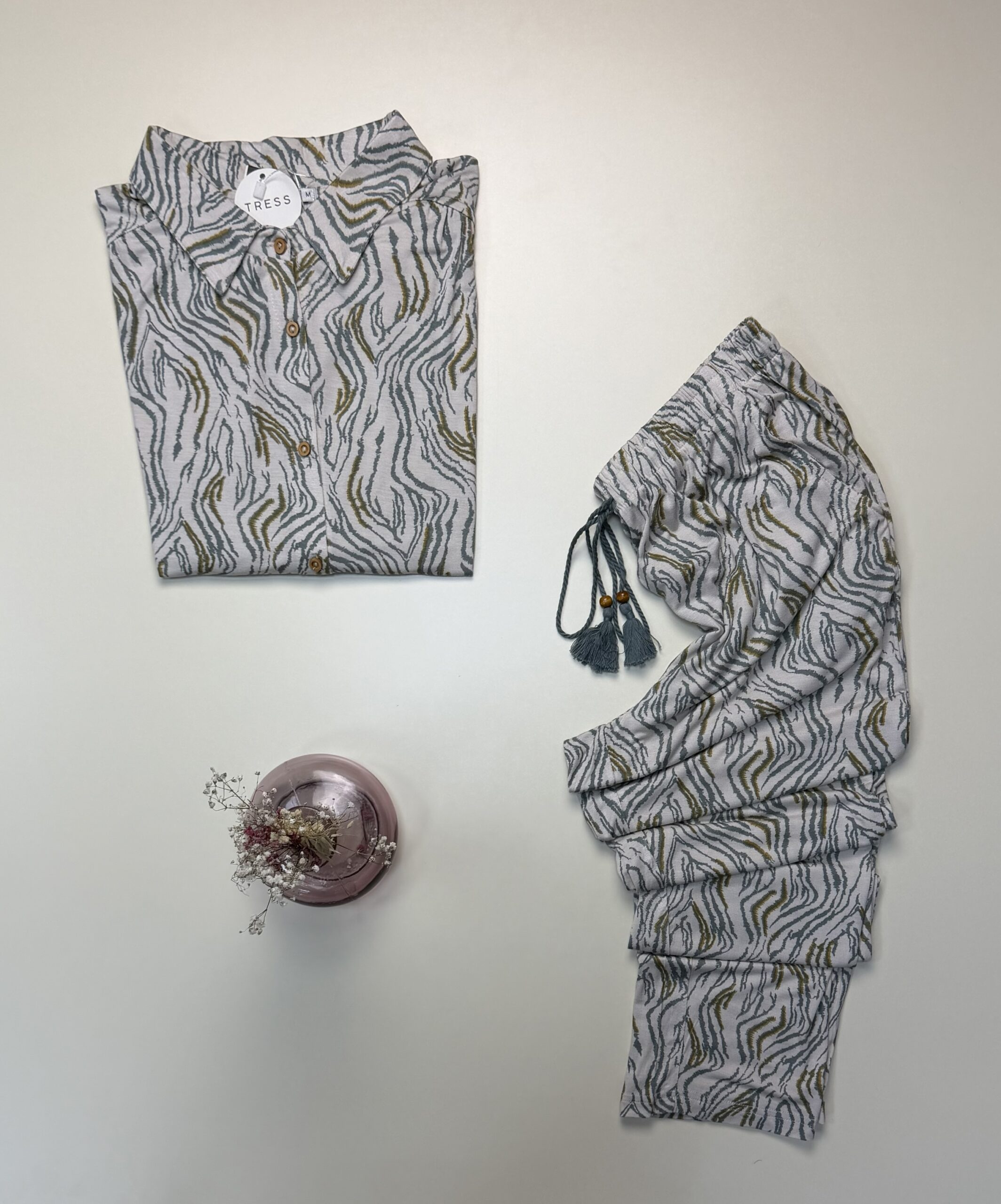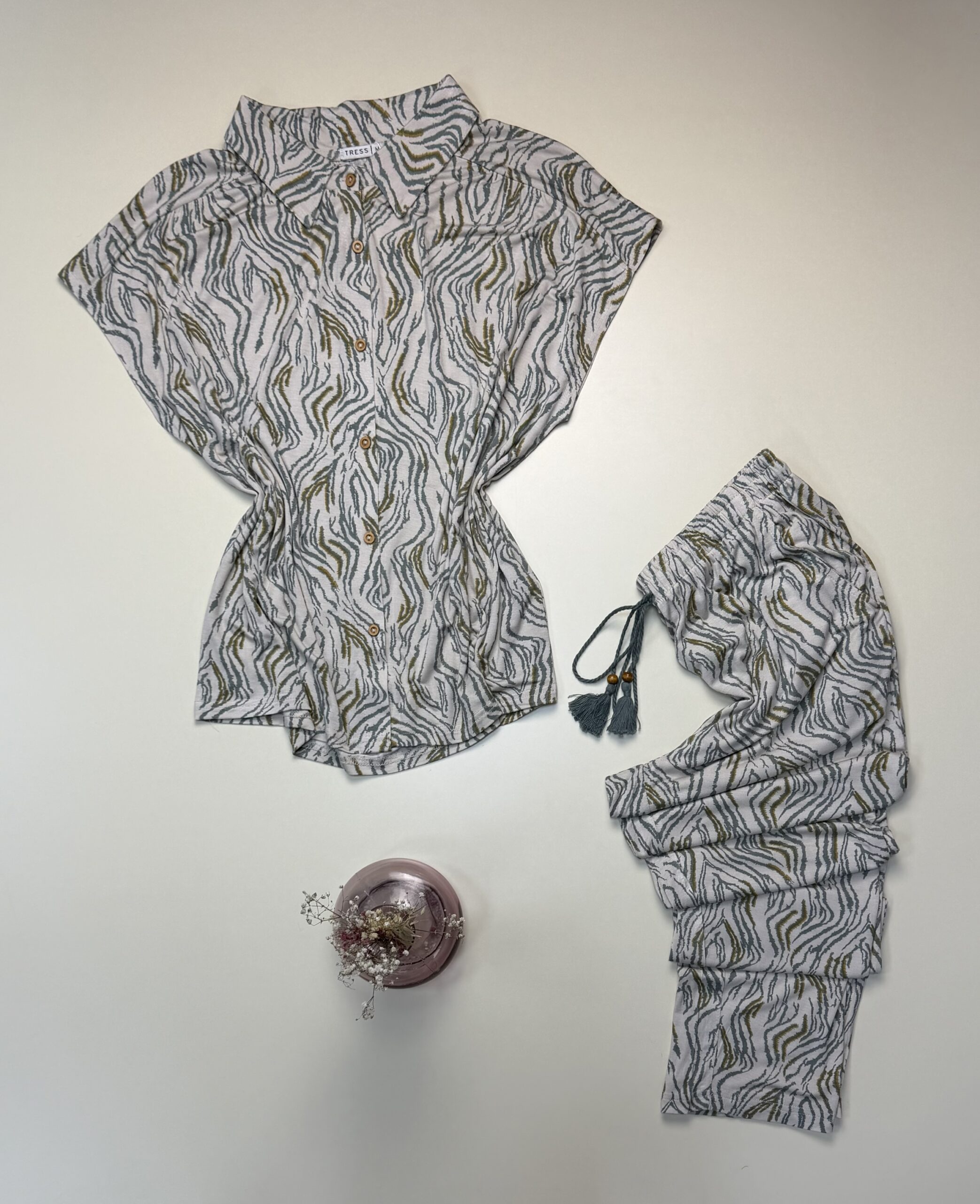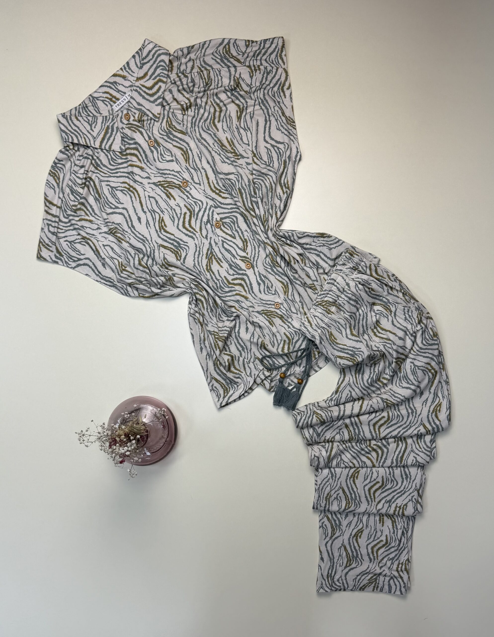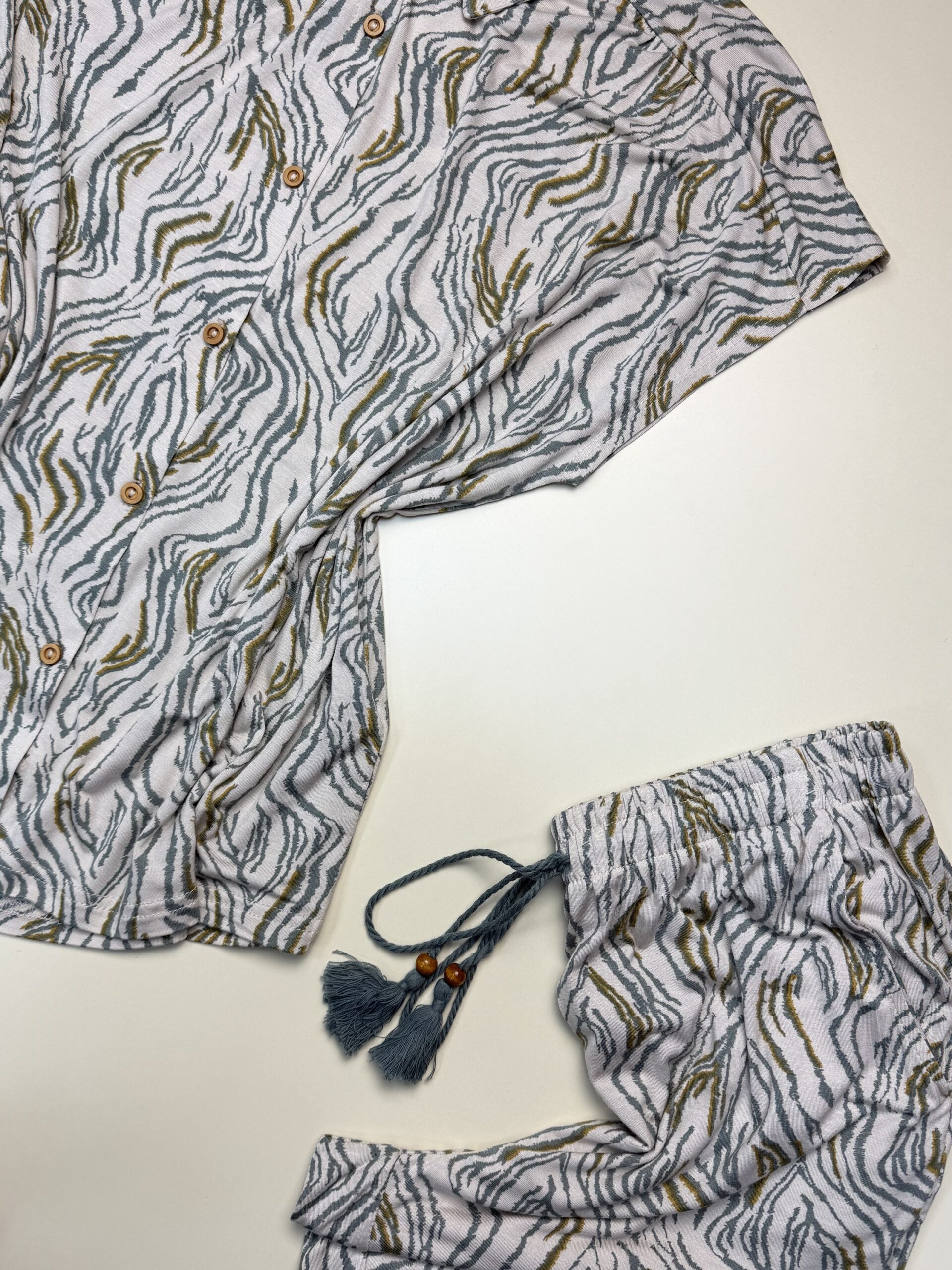 Pyjama pantalon demi manche boutonné » Motif zébré vert «