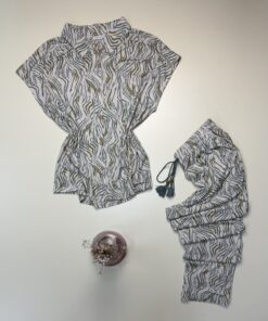 UGS : PG267281 MOTIF ZEBRE VERT Catégories : Pyjama, Pyjama boutonné, Pyjama haut demi manche