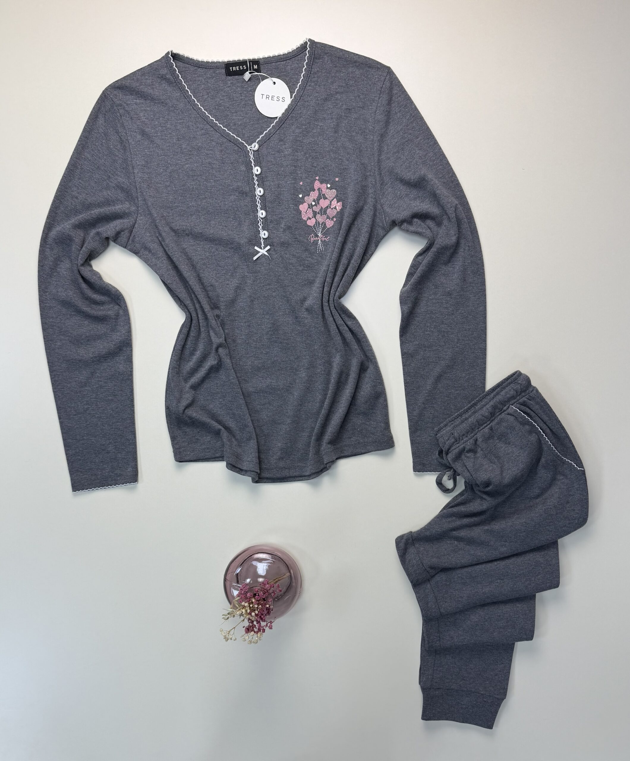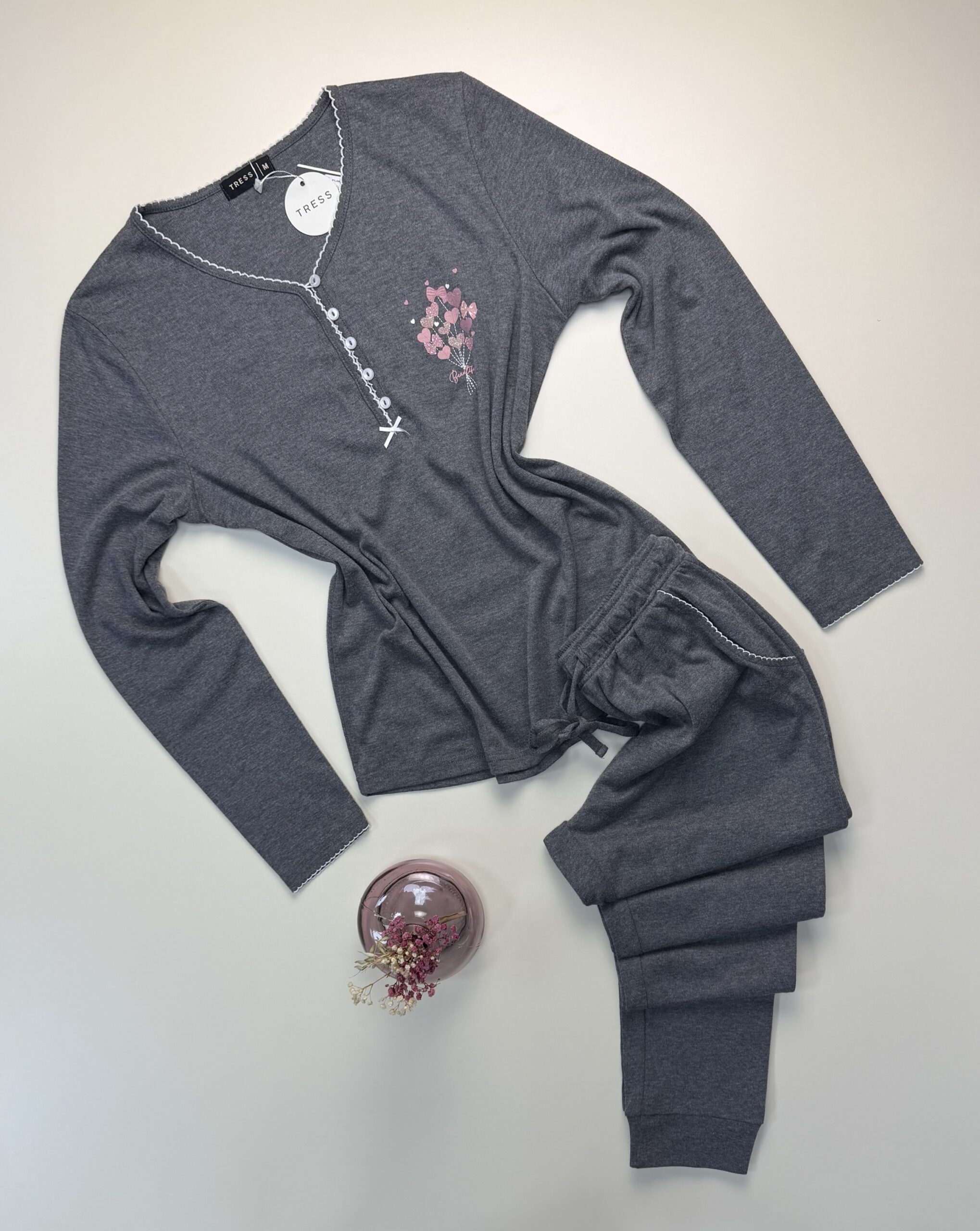 Pyjama pantalon haut manche longue » Gris «