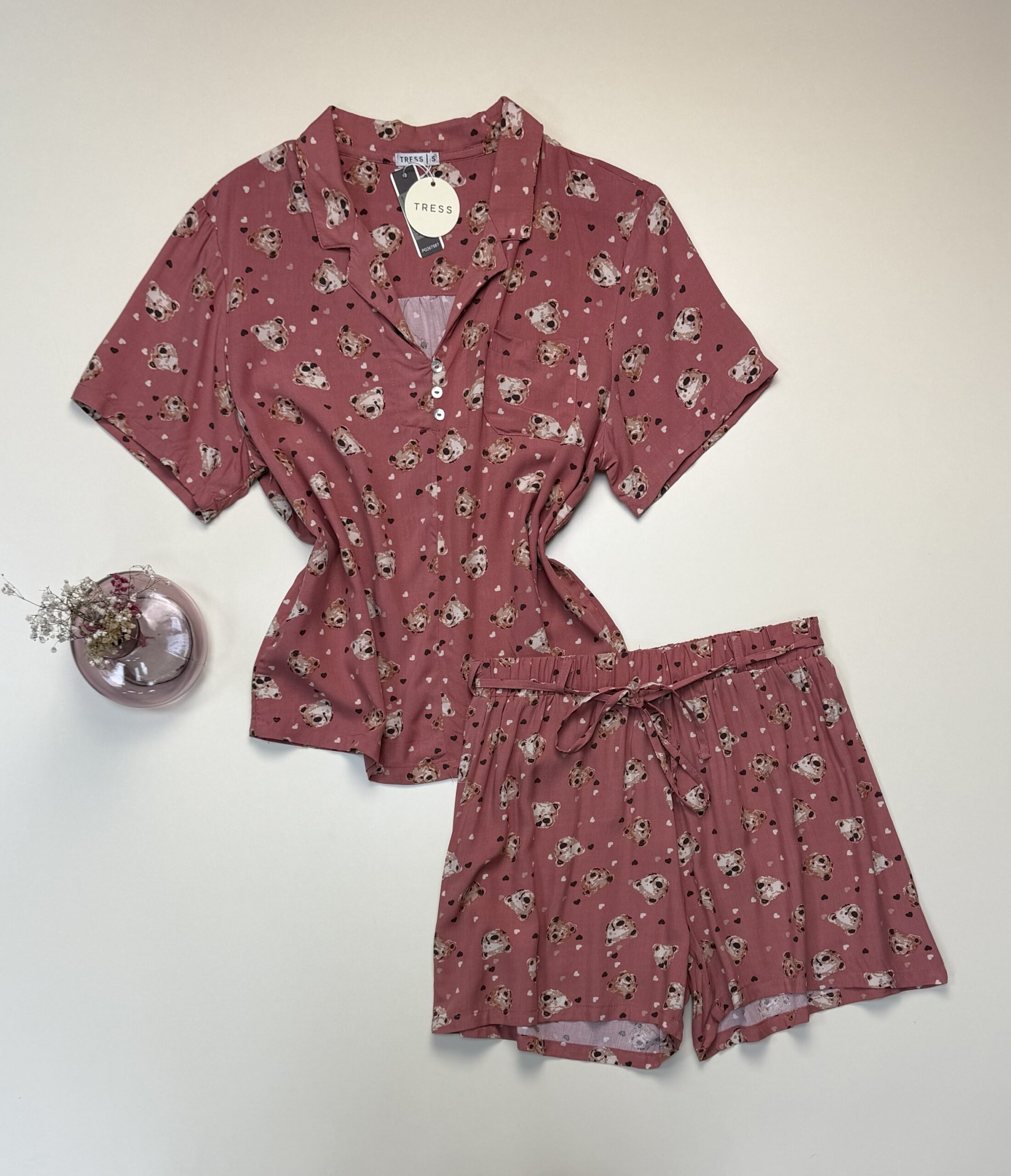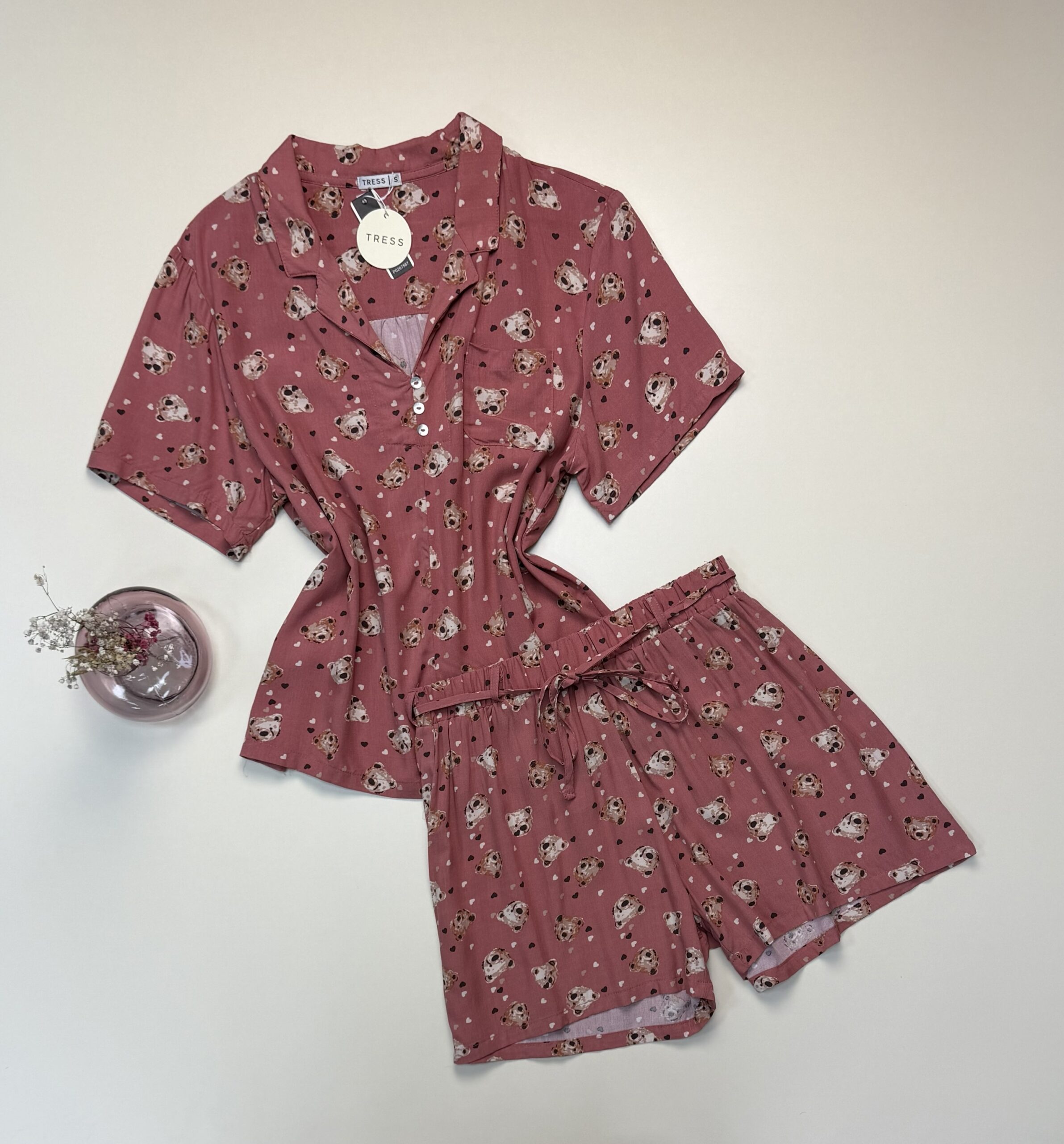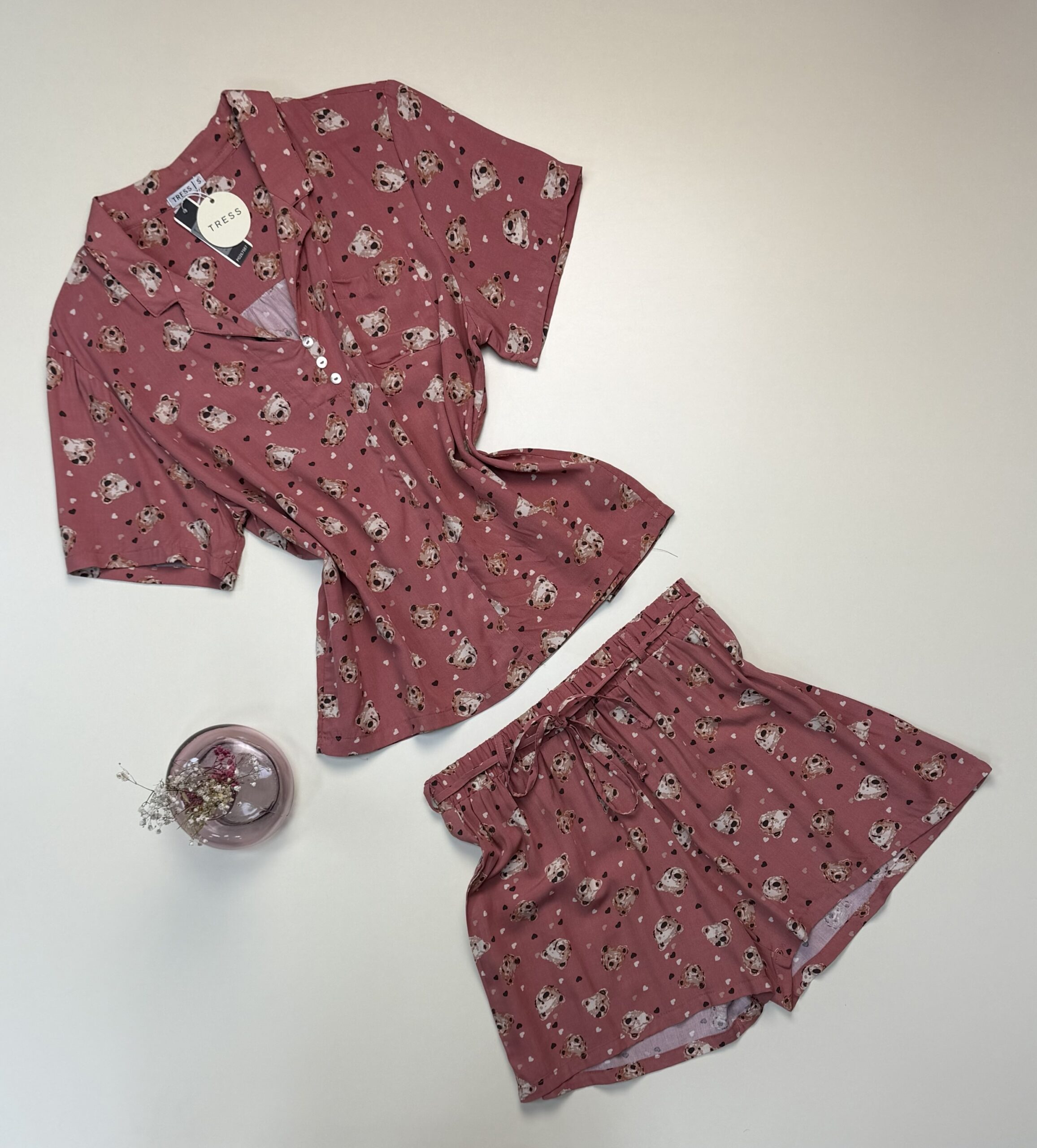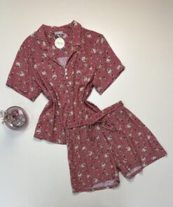 Pyjama short boutonné « Rose à motif » – TRESS –