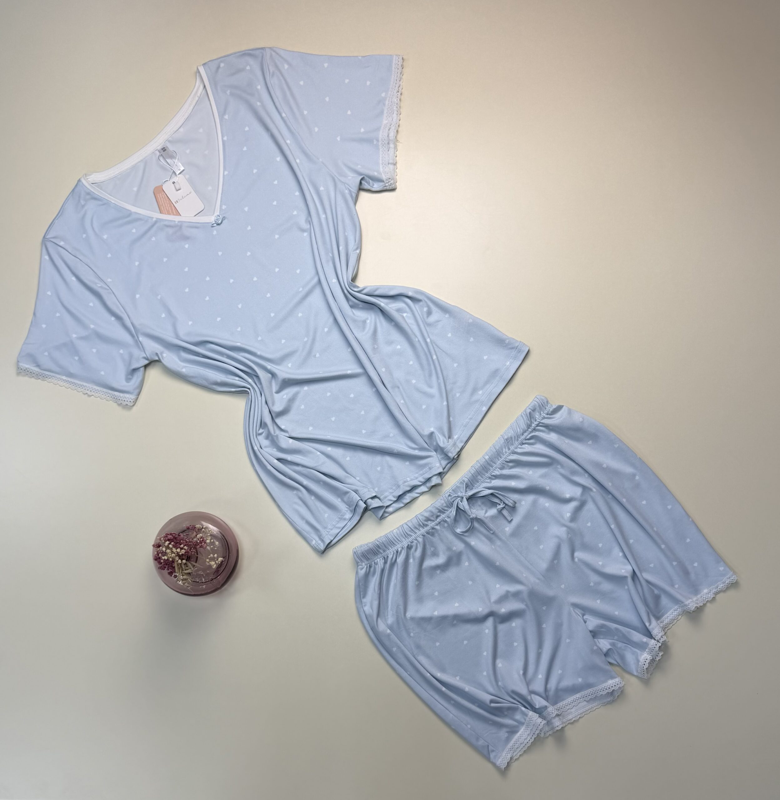 Pyjama Short Haut Demi Manche » Bleu «